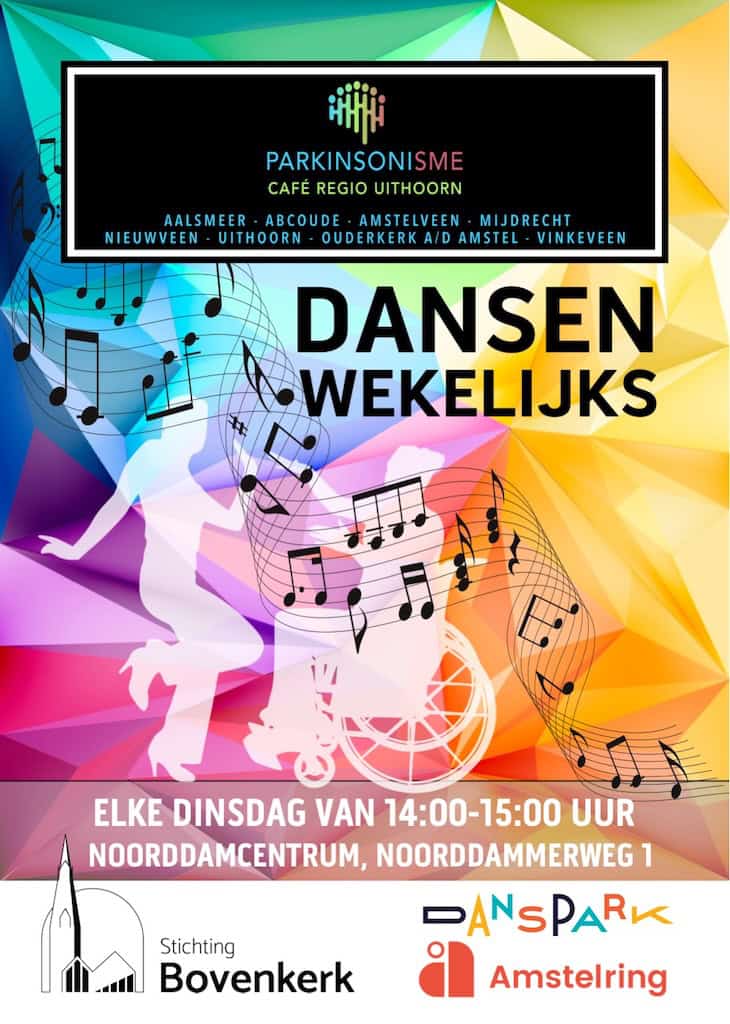 Deze activiteit is speciaal voor mensen die een uitdaging in beweging ervaren als gevolg van o.a. Parkinson, MS, ADCA, CVA of reuma. Daarbij maakt het niet uit of je kunt lopen, staan, soms last hebt van bevriezingsverschijnselen of een rollator of rolstoel nodig hebt. Desgewenst kan je alle oefeningen op een stoel meedoen. We beginnen het dansen sowieso allemaal zittend.